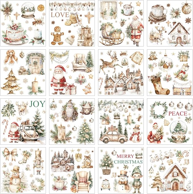 - Rustic Christmas Design: This 16-sheet set features rustic holiday designs including Santa, snowmen, and gnomes, echoing a cozy vintage farmhouse style. Christmas rub on transfers bring warm, nostalgic charm to every DIY project
